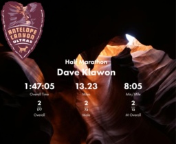 | Finish | 13.23 | 1:47:05 | 8:05/miles | 1.23 | 9:28 | 7:41/miles | 2 | 2 M | 2 M Overall |