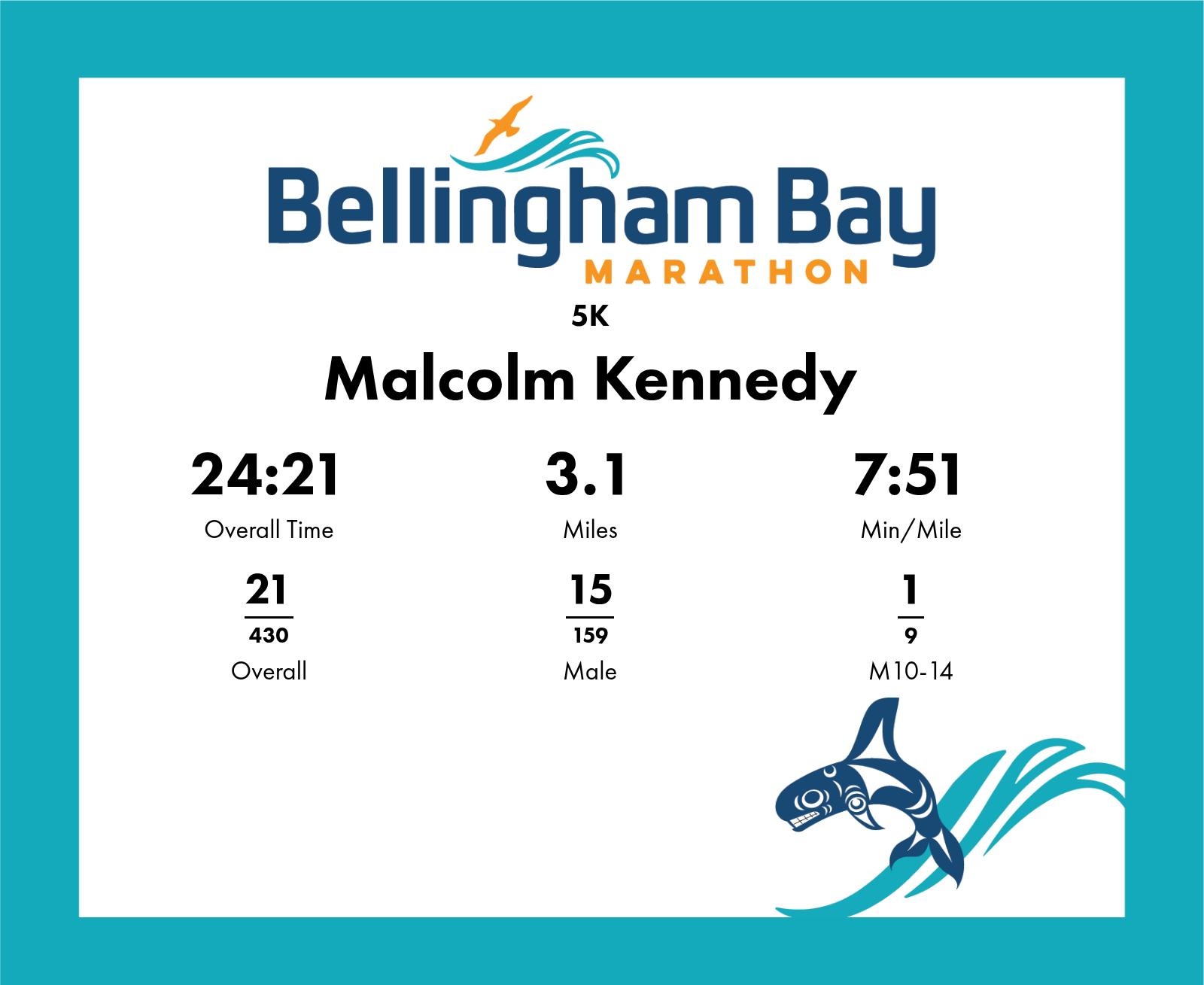 | Finish | 3.1 | 24:21 | 7:51/miles | 1.3 | 9:50 | 7:33/miles | 21 | 15 M | 1 M10-14 |