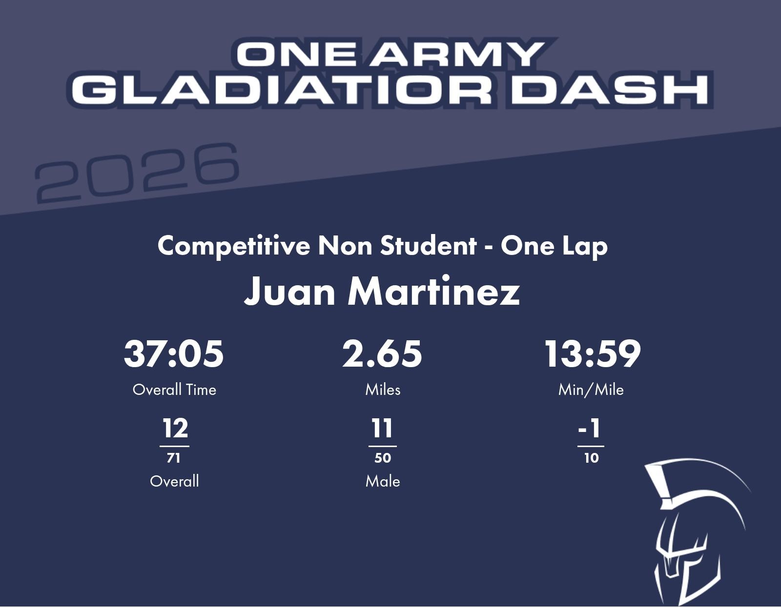 | Finish | 2.65 | 37:05 | 13:59/miles | 0.71 | 9:03 | 12:44/miles | 12 | 11 M | |