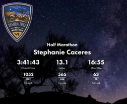 Date: Nov. 1, 2025 Participant: Stephanie Caceres #1732 Race: 2025 Vacation Races | Joshua Tree Half Marathon Distance: 13.1 miles