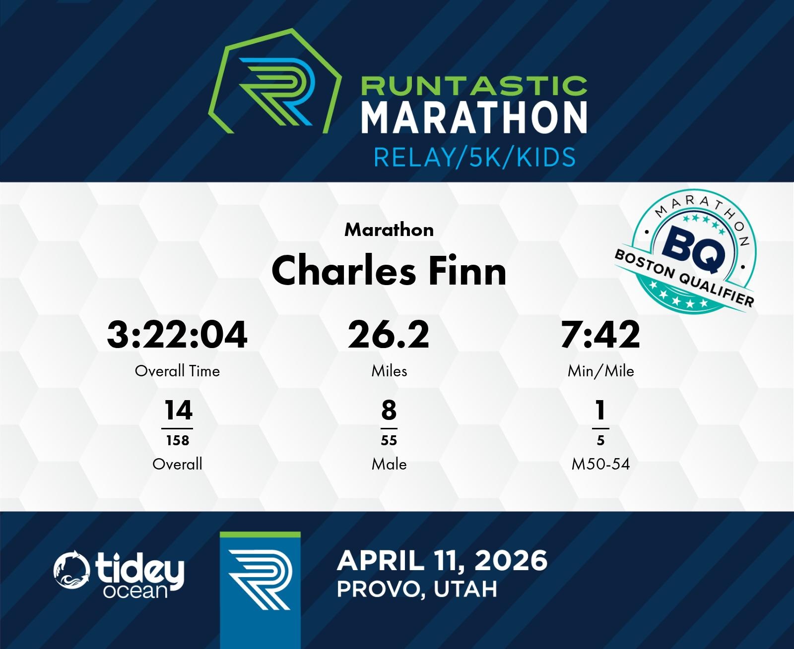 Date: April 11, 2026 Participant: Charles Finn #1101 Race: 2026 Runtastic Marathon Distance: 26.2 miles