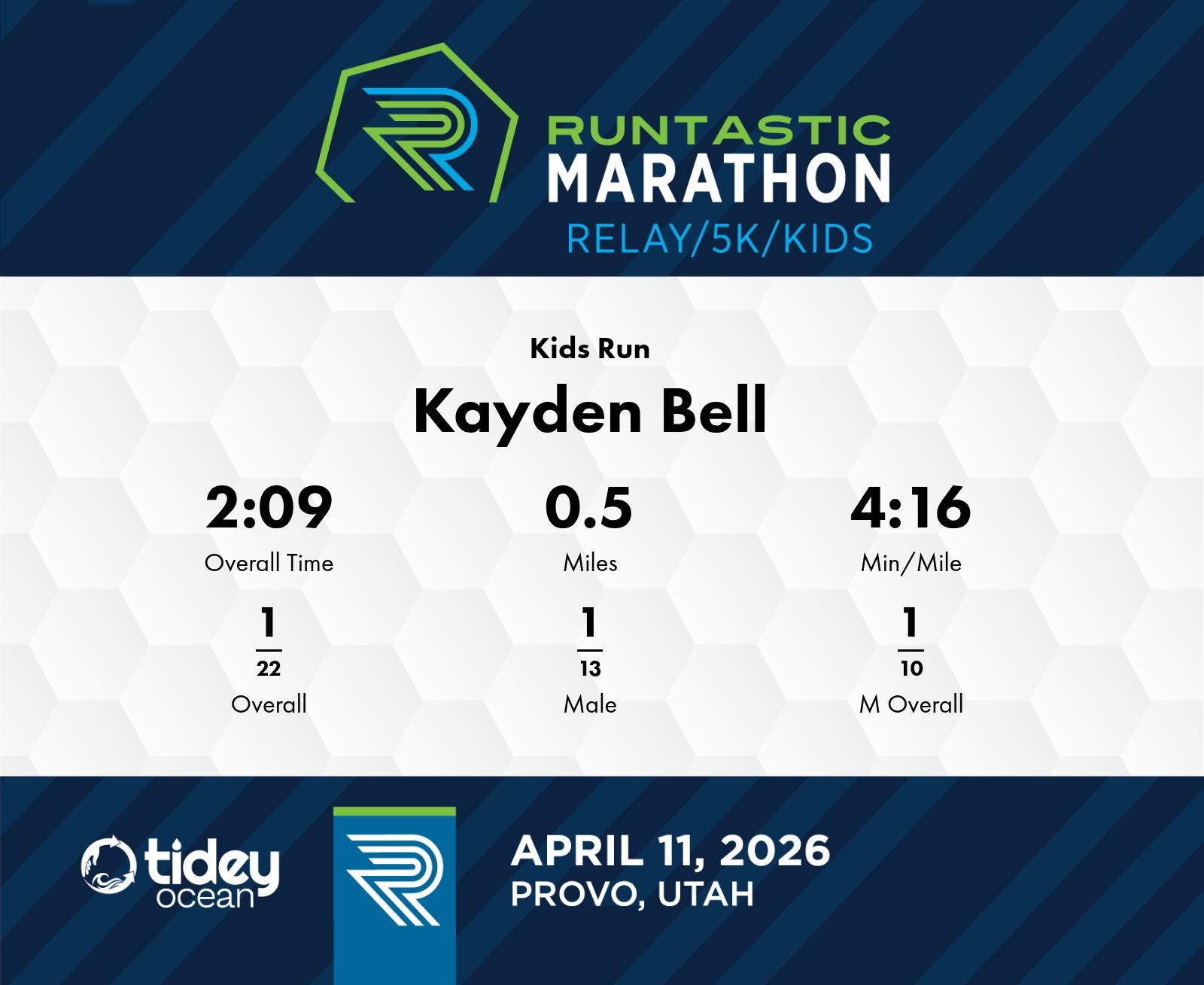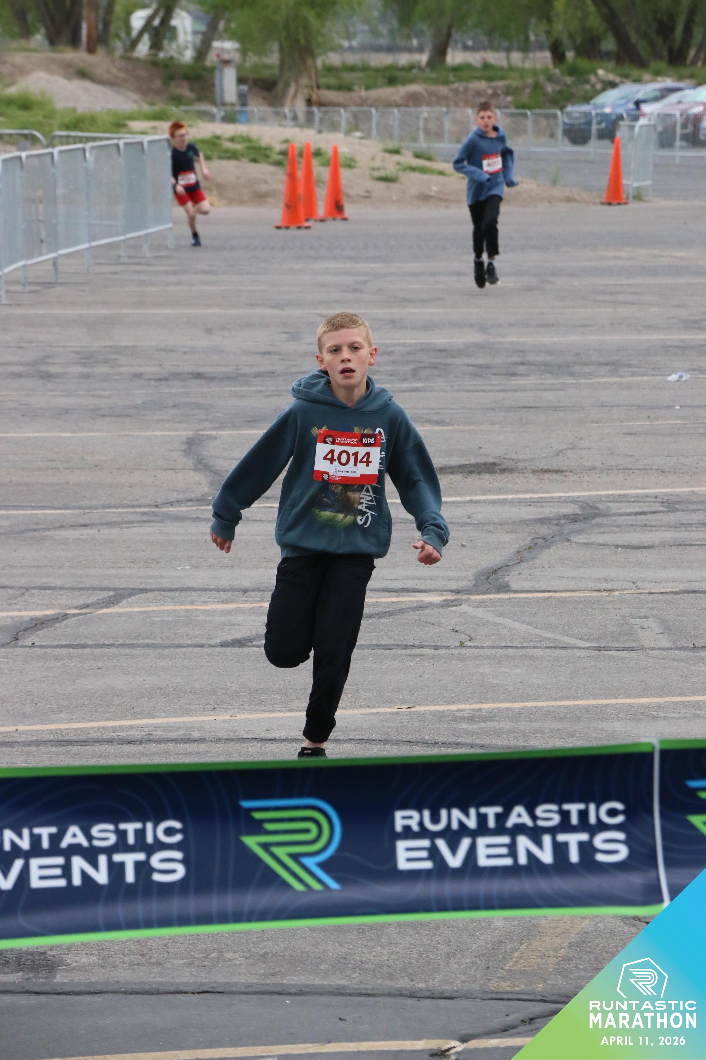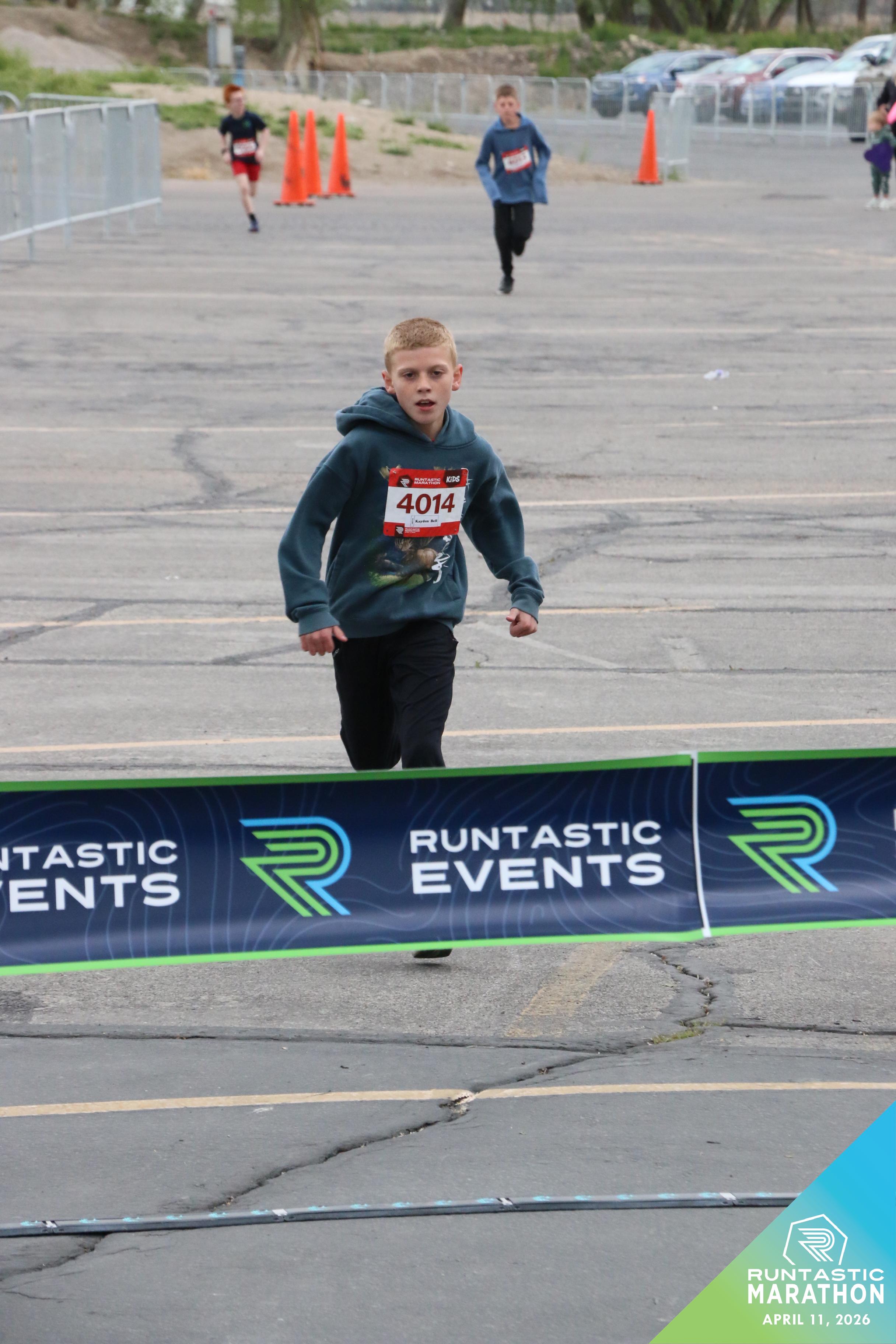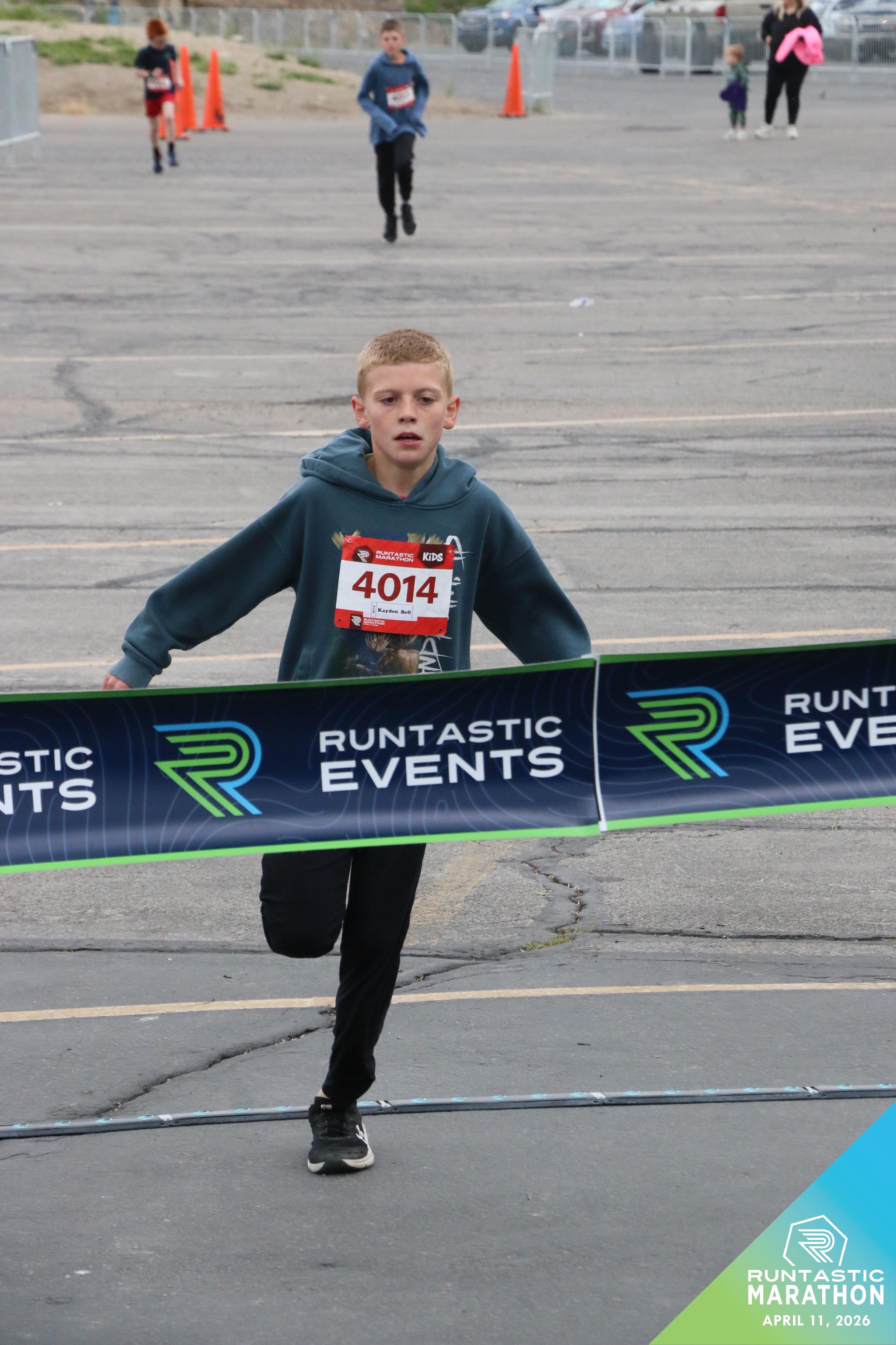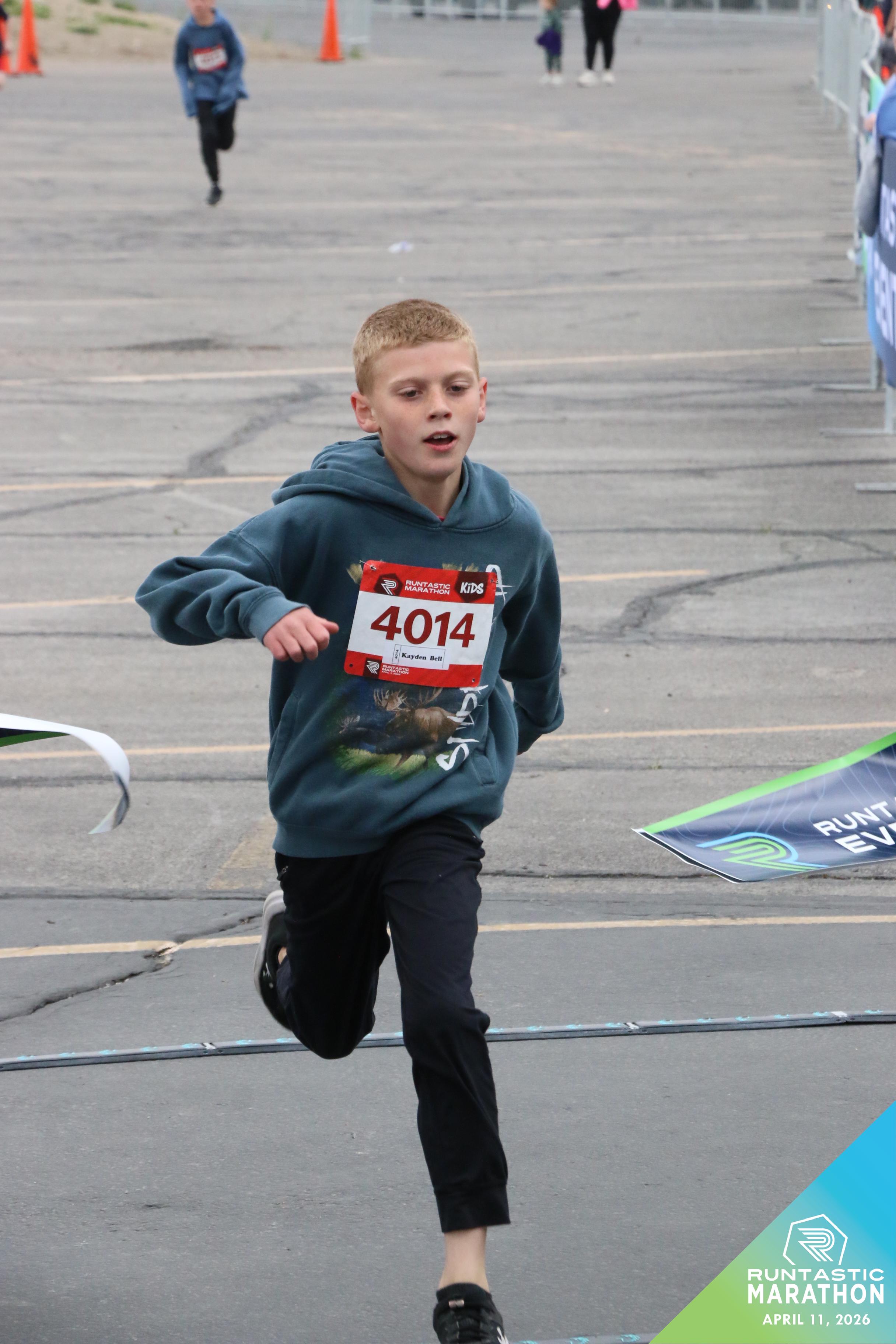 Date: April 11, 2026 Participant: Kayden Bell #4014 Race: 2026 Runtastic Kids Run Distance: 1.0 miles