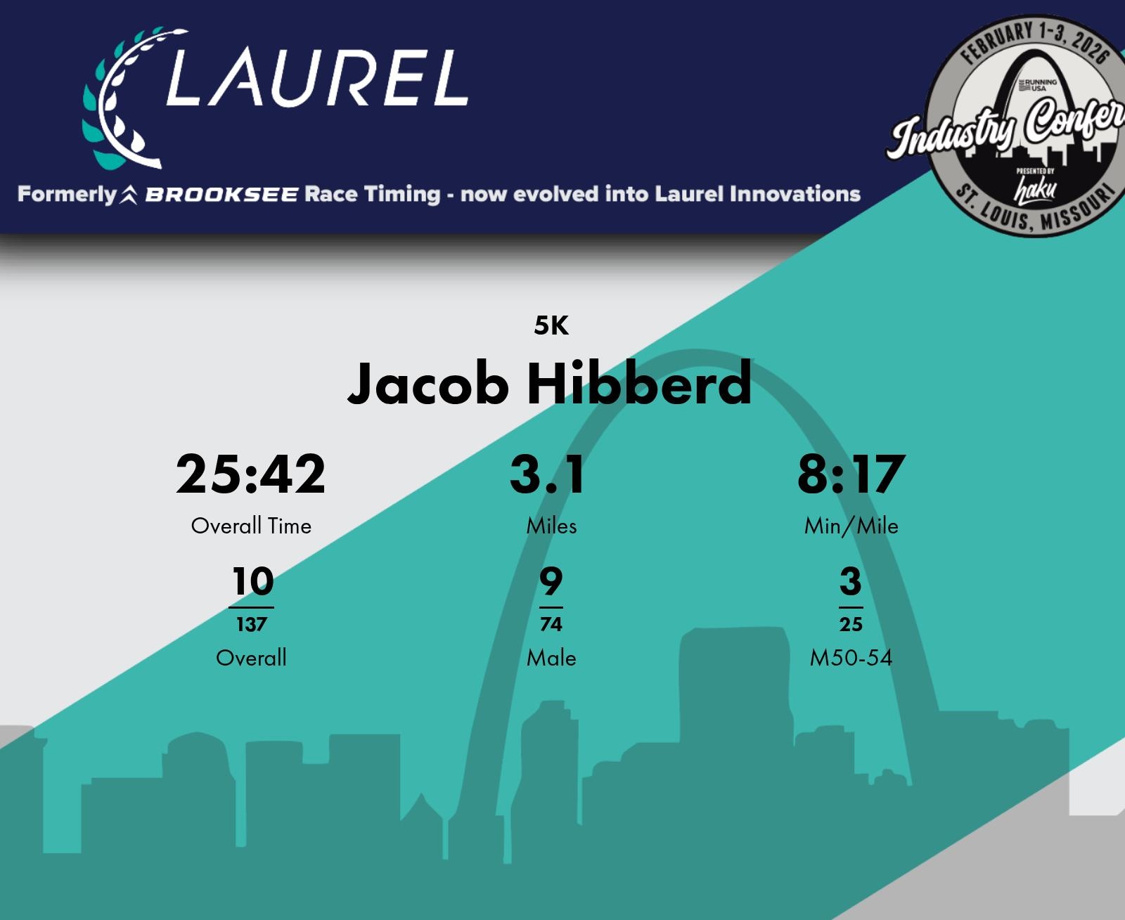 Consistent Pace with Strong Division Finish Jacob Hibberd delivered a solid performance at the 2026 RUSA Monday Morning Run, completing the 5K distance in 25:42 with an average pace of 8:17 min/mile. His consistent pacing throughout, marked by a final split of 7:48 min/mile, secured him a commendable 3rd place finish in the M50-54 division out of 189 participants. Throughout the race, Jacob maintained a steady and improving pace, highlighted by his final split, which was his fastest. Competing in this non-competitive fun run with an overall 10th place, Jacob's result showed determination and maintained a strong competitive edge in his age division.
