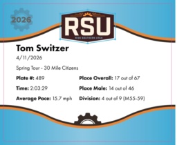 | Mile 30 | 30.0 | 1:50:39 | 16.3 mph | 20.0 | 1:09:46 | 17.2 mph | 21 | 18 M | 5 M55-59 |
