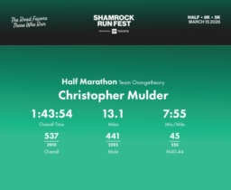 Date: March 15, 2026 Participant: Christopher Mulder #5710 Race: 2026 Shamrock Run Fest presented by Toyota Half Marathon Distance: 13.1 miles
